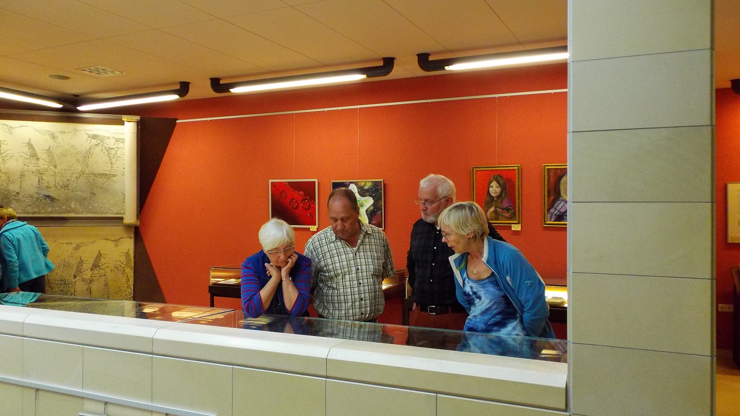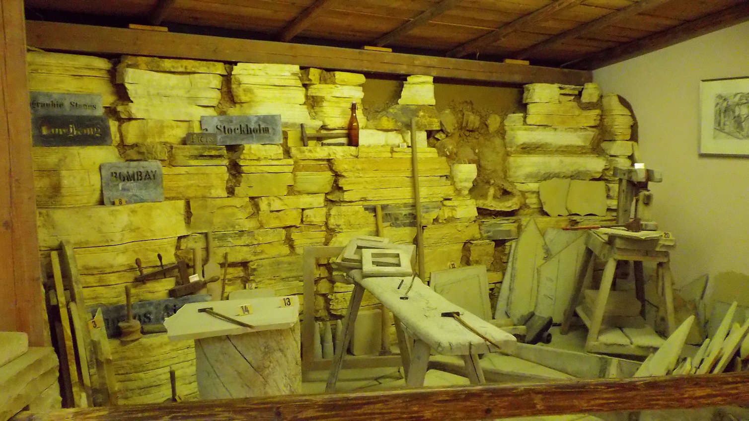 Nach dem sehenswerten Museum statteten wir dem Museum für Ur- und Frühgeschichte, was ebenfalls in der Burg untergebracht ist, einen kurzen Besuch ab. Das dritte Museum, das wir besuchten, ist direkt neben dem Besuchersteinbruch am Blumenberg. Auf dem Gut Harthof ist das kleine Museum der Firma Bergér untergebracht. Hier sind nur Fundstücke untergebracht, die in den Steinbrüchen der Firma Bergér gefunden wurden. Über 800 verschiedene Tier- und Pflanzenarten sind in den Gruben ans Licht gekommen, und viele davon werden gezeigt. Auch hier wird in einer Vitrine die Geschichte des Urvogels erklärt. In der Lithographie (einem Steindruckverfahren) werden seit dem 18. Jahrhundert die Solnhofer Plattenkalke genutzt. Künstler nutzen heute noch diese Methode. Bei Bergér findet man eine voll funktionsfähige Lithopresse aus dem Jahr 1850. Fazit: Wenn man in der Gegend ist, sollte man alle drei Museen besuchen.